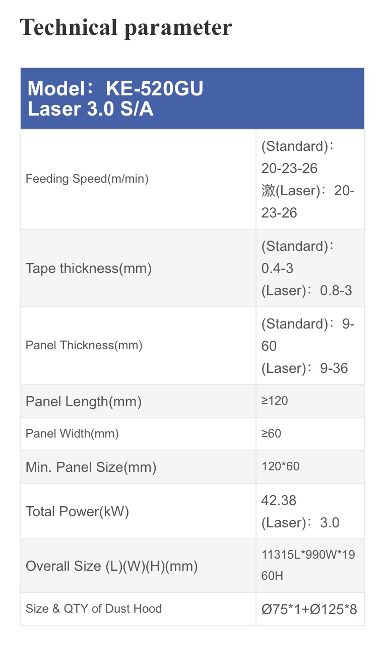 Máy đán cạnh Laser model: KE-520GU Laser 3.0 S/A